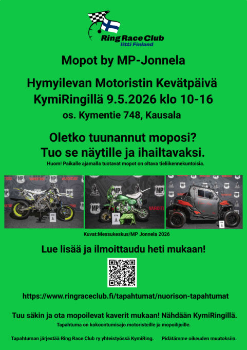 Jonnet hei tää on teille! – Tuo sinäkin tuunattu moposi näytille ja ihailtavaksi Ring Race Clubin kauden avaustapahtumaan Hymyilevän Motoristin Kevätpäivään 9.5.2026 KymiRingille!
