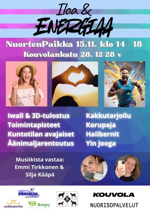Iloa & Energiaa -tapahtuma NuortenPaikassa lauantaina 15.11.2025, klo 14.00 – 18.00